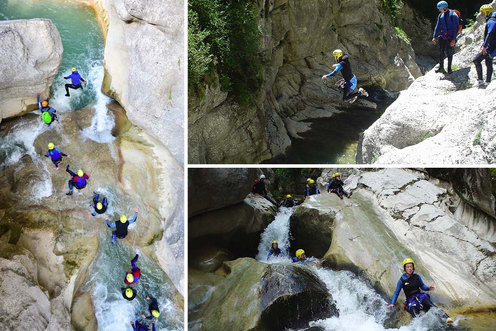 Yes, starting your hike in La Maline is probably best as you’ll avoid the really steep climb/descent to/from Point Sublime. There’s parking along the road just up from Chalet La Maline. The walking is moderately technical and the walk down from La Maline to the bottom of the canyon is long and steep. It may be that walking down to the river, having a picnic on the beach and then walking back up again will be about right for the family.
